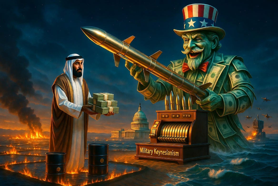 The staggering price tag on American weapons and ammunition is not merely a product of advanced engineering or bureaucratic bloat. It is a deliberate feature of a system that functions as both economic stimulus and geopolitical control mechanism. This is military Keynesianism in action: using permanent, high-cost arms spending and exports to prop up the US industrial base, recycle dollars back into the domestic economy, and lock allies into dependency. The same playbook that drained Ukraine is now being applied to Saudi Arabia and the broader Gulf - heightening insecurity so that premiums keep flowing to Washington.